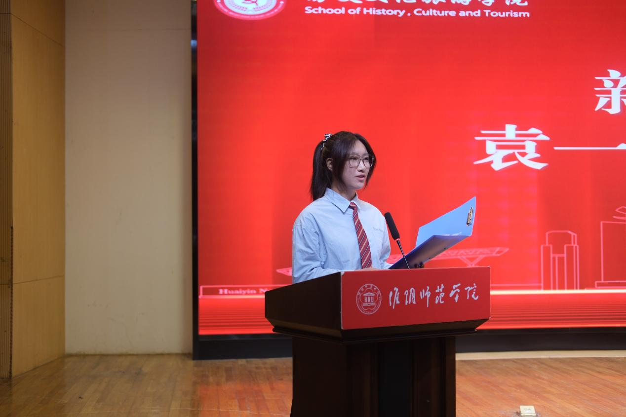 图为新生代表袁一茗发言。