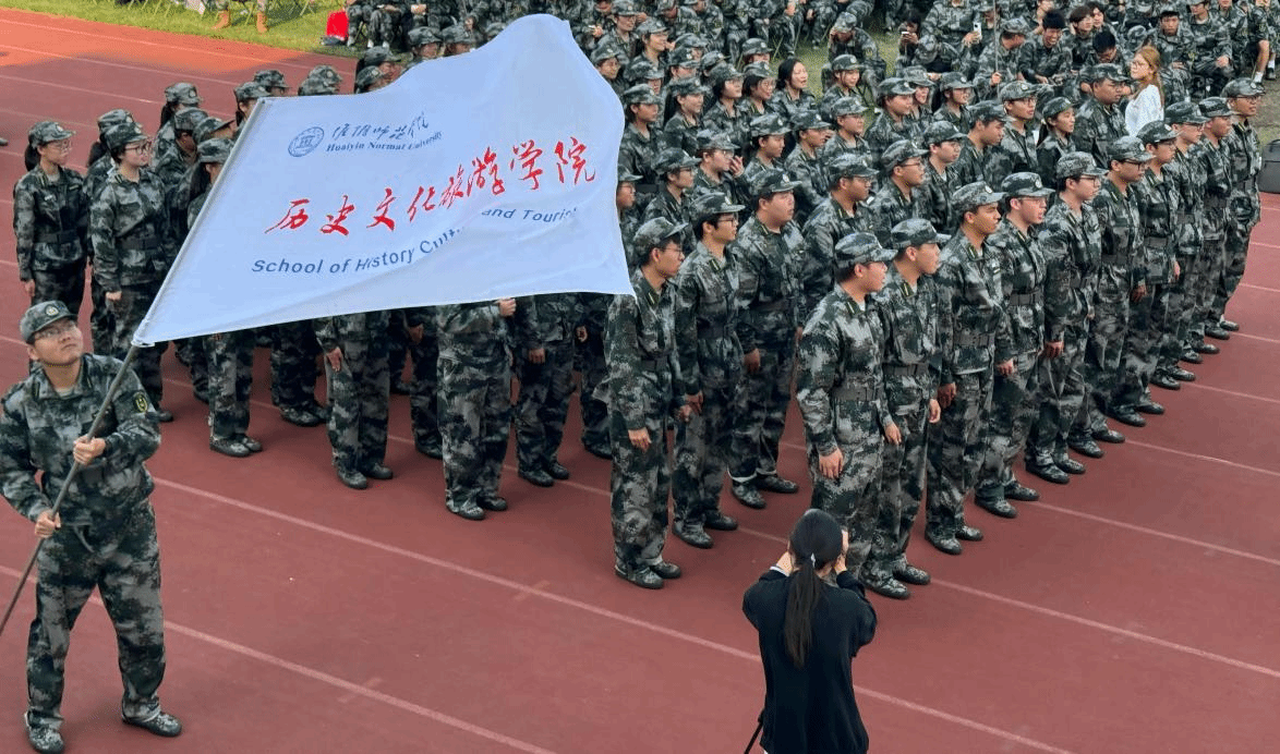 暑气初退,红叶未透,历史学院2025级学子身着军训迷彩,踏着夏天最后的热浪走来。
