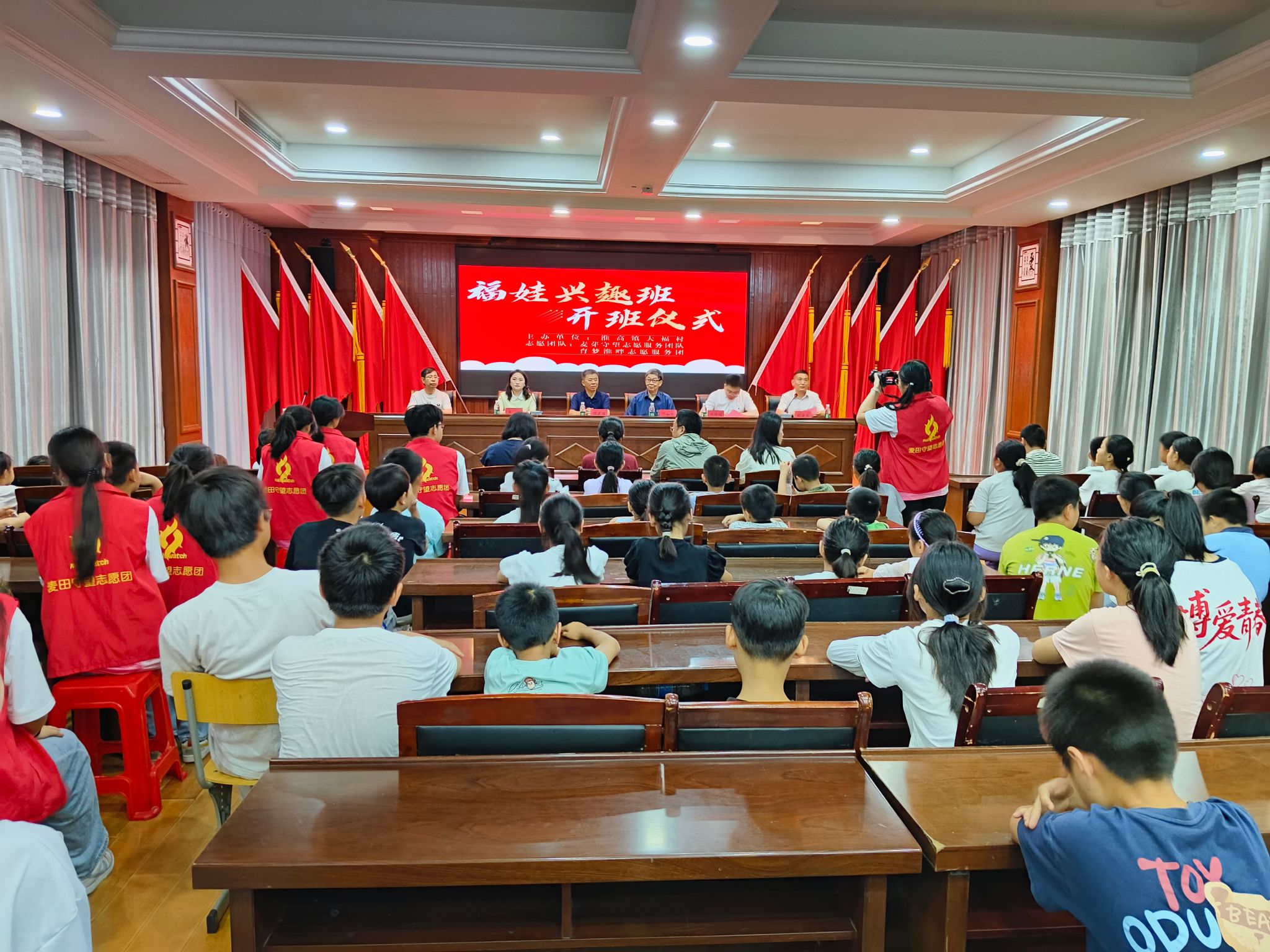 2025年7月16日,淮高镇大福村关工委、淮阴师范学院关工委在大福村党群服务中心联合举行第三届“福娃兴趣班”开班仪式。仪式由大福村党总支书记胡海荣主持,淮阴师范学院关工委常务副主任顾建国、淮阴师范学院心理学教授邓如陵、淮阴师范学院关工委秘书长陈田田、淮阴师范学院关工委副秘书长张春、历史文化旅游学院党委副书记王玮、历史文化旅游学院关工委常务副主任邵金凯老师、淮高镇镇长许祥瑞、历史学院麦芽守望志愿服务团和育梦淮畔志愿服务团的志愿者们、大福村工作人员及兴趣班全体“福娃”参加启动仪式。