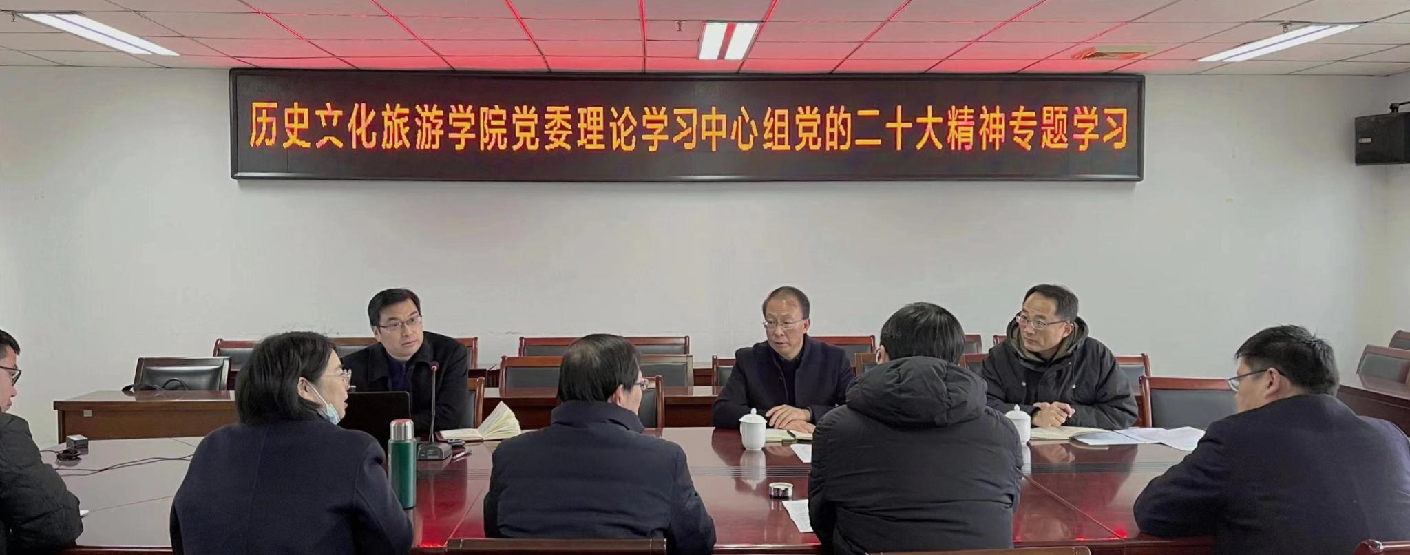 2022年11月30日,历史学院党委理论学习中心组在弘文1-612学习党的二十大精神,对中国式现代化理论的新飞跃进行专题学习。学院党委理论学习中心组全体成员参加学习,校党委常委、副校长陈春雷、后勤服务集团副总经理孙建华巡学旁听,院党委书记时名早领学。